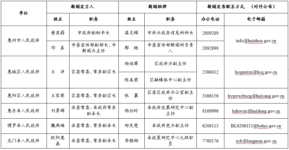 2024年惠州市政府新聞發(fā)言人和新聞助理名單