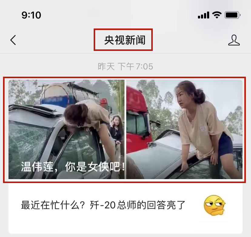 11月9日19點(diǎn)05分,央視新聞微信公眾號推出了《溫偉蓮,你是女俠吧! 》。