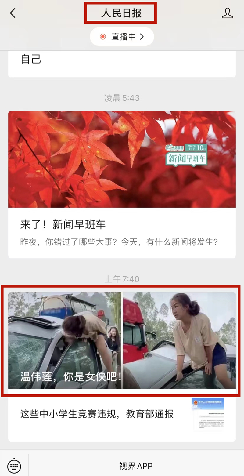11月10日上午7點(diǎn)40分,人民日報微信公眾號推出了《溫偉蓮,你是女俠吧! 》