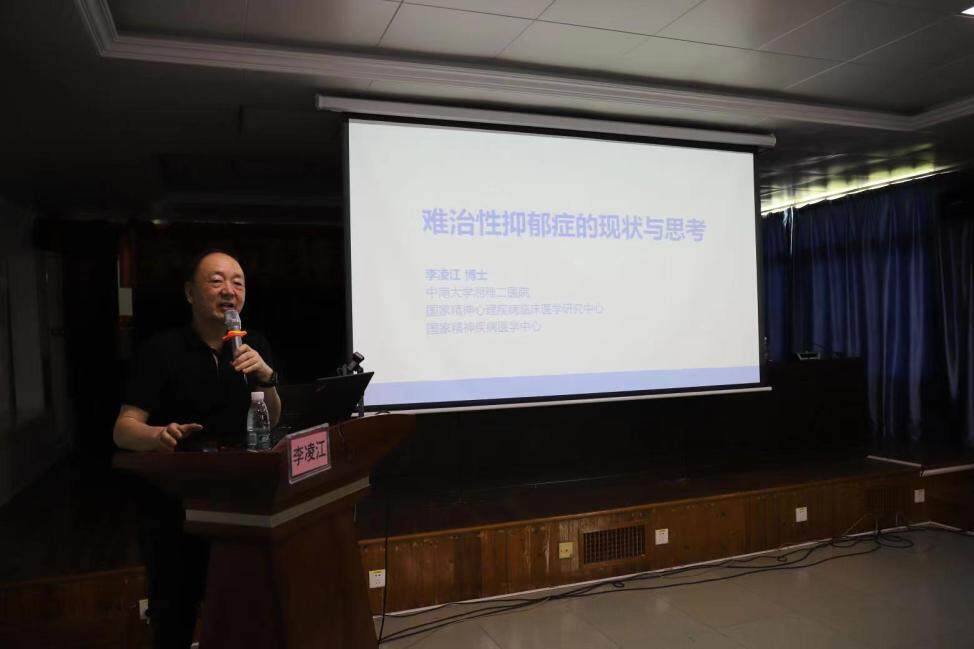 授牌儀式結束后,市二院舉辦學術交流活動,李凌江現(xiàn)場開展題為《難治性抑郁的診治新進展》的專業(yè)授課,并且該院特聘教授劉鐵榜也開展《精神分裂癥的精神病理與診斷》專題授課。