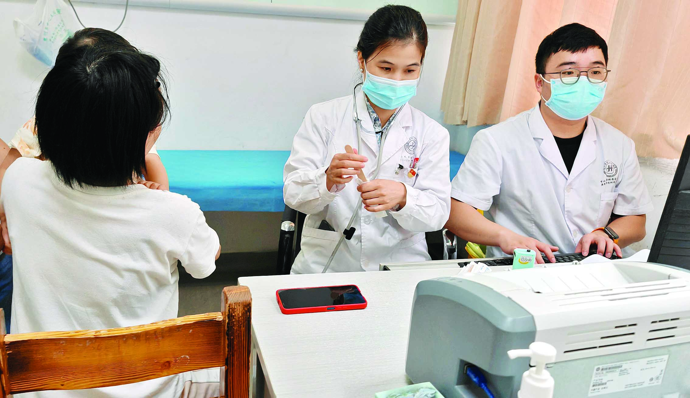 家長(zhǎng)帶小孩看病。