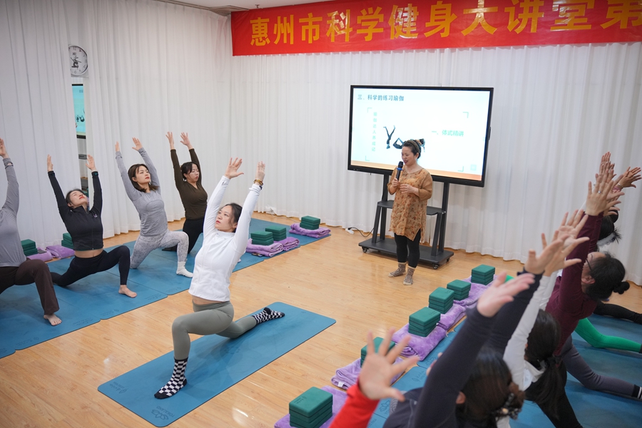 惠州市科學(xué)健身大講堂第七期,趙慧琴主講瑜伽主題。 東江時(shí)報(bào)記者周楠 攝