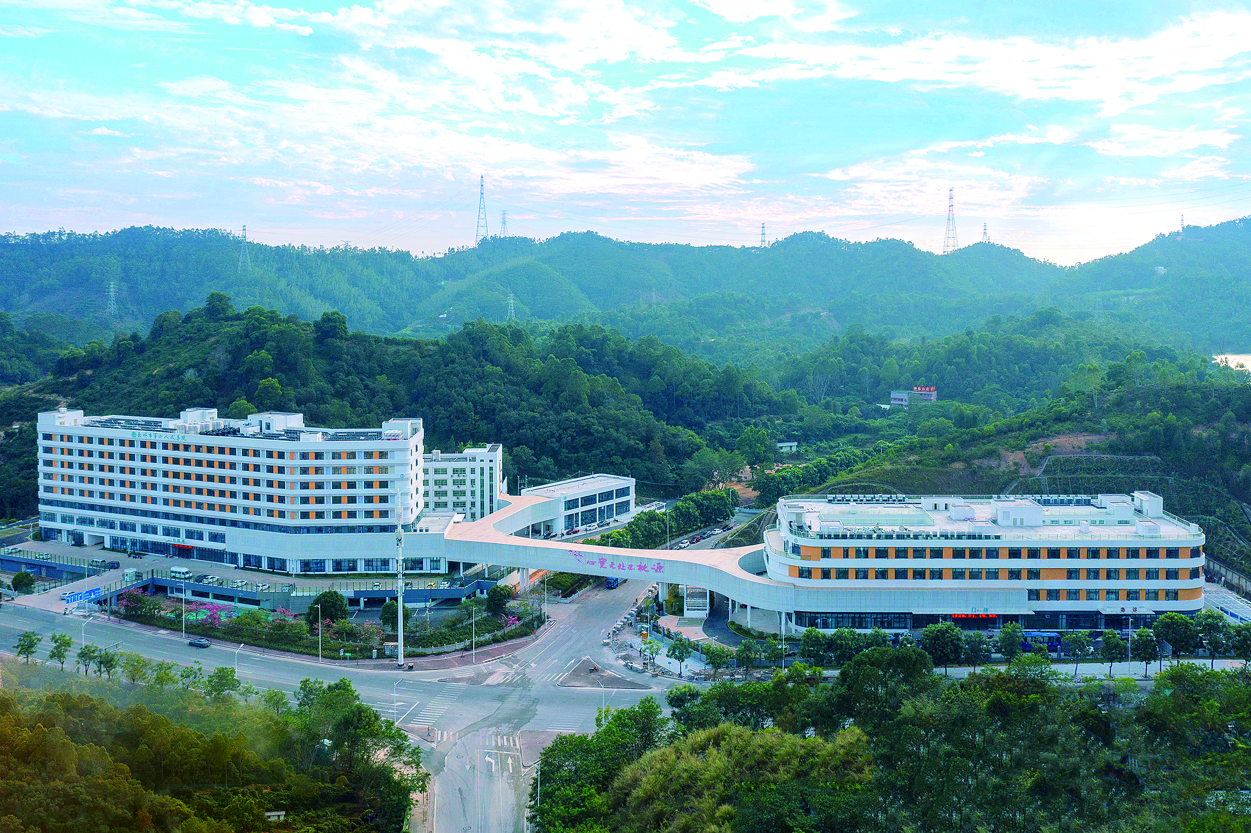 “心寬無處不桃源!眮淼交葜菔械诙嗣襻t(yī)院紅花湖新院區(qū),位于醫(yī)院天橋連廊外墻的這七個(gè)大字,一下子就刻入了心里。這七字取自中國現(xiàn)代詩人譚劍飛的詩詞《靜》,描繪出了令人向往的世外桃源。該院新院區(qū),就背靠桃花源生態(tài)公園。公園群山環(huán)繞,碧波蕩漾,空氣清新,可以說是惠州的一處“世外桃源”。地理位置上的臨近也許是巧合,但這對(duì)于惠州市第二人民醫(yī)院來說,是對(duì)于未來的美好愿景,始終堅(jiān)守的初心使命——期望成為守護(hù)惠州人民心靈健康的世外桃源。