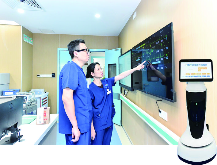 在高級(jí)智慧病房,充滿科技?xì)庀⒌腁I智能服務(wù)更將患者的就醫(yī)體驗(yàn)感和滿意度拉滿,智能調(diào)控?zé)艄饬炼、智能術(shù)前術(shù)后宣教、精準(zhǔn)推送健康知識(shí)……全方位的智能服務(wù)勾勒出生動(dòng)的服務(wù)場(chǎng)景,讓住院生活更舒心。