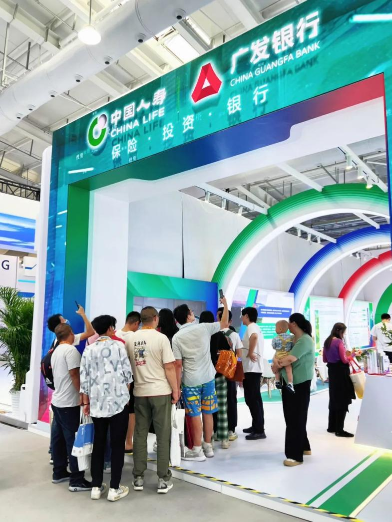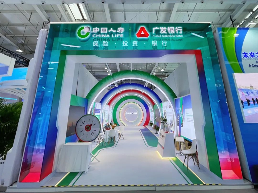 中國人壽-廣發(fā)銀行聯(lián)合展位分為大國重器、大美神州、大愛為民三個篇章,吸引了觀眾紛紛駐足觀看。