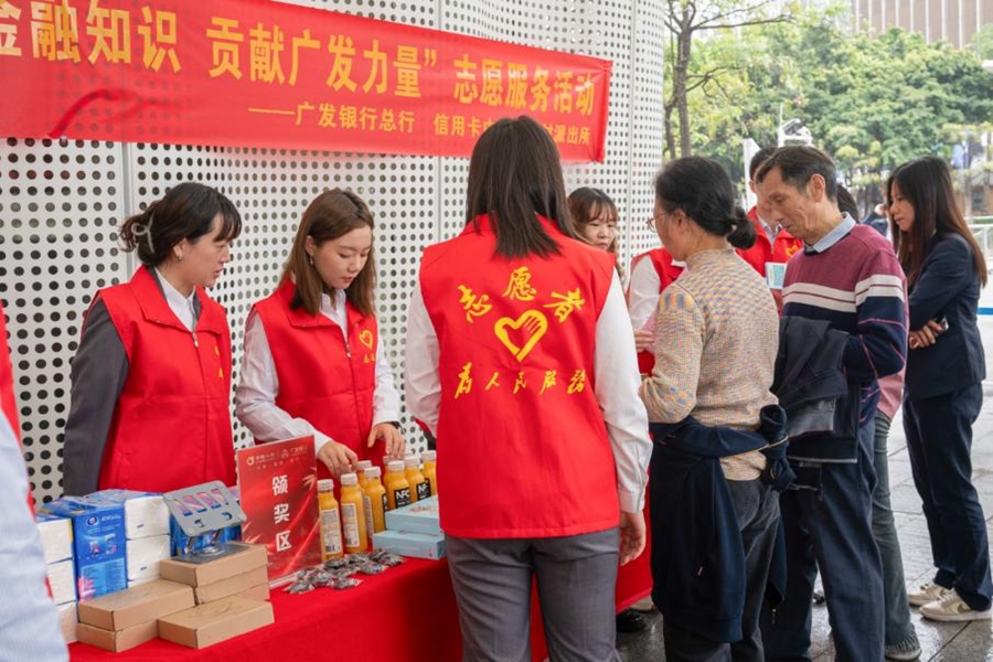 在位于廣州天河區(qū)的花城廣場(chǎng)黨群服務(wù)站,廣發(fā)銀行黨員干部組成一支志愿者服務(wù)隊(duì),為市民帶來(lái)了金融知識(shí)、防范電信網(wǎng)絡(luò)詐騙、征信知識(shí)等一系列金融消保教育宣傳“大餐”。