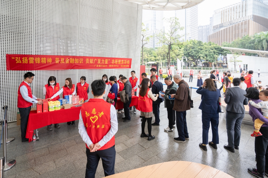 為大力弘揚(yáng)雷鋒精神,有力踐行“奉獻(xiàn)、友愛(ài)、互助、進(jìn)步”的志愿服務(wù)精神,積極落實(shí)監(jiān)管機(jī)構(gòu)“3·15”金融消費(fèi)者權(quán)益保護(hù)教育宣傳活動(dòng)要求,引導(dǎo)黨員干部發(fā)揮先鋒模范作用,3月5日,廣發(fā)銀行組織開(kāi)展“弘揚(yáng)雷鋒精神 普及金融知識(shí) 奉獻(xiàn)廣發(fā)力量”志愿服務(wù)活動(dòng)。