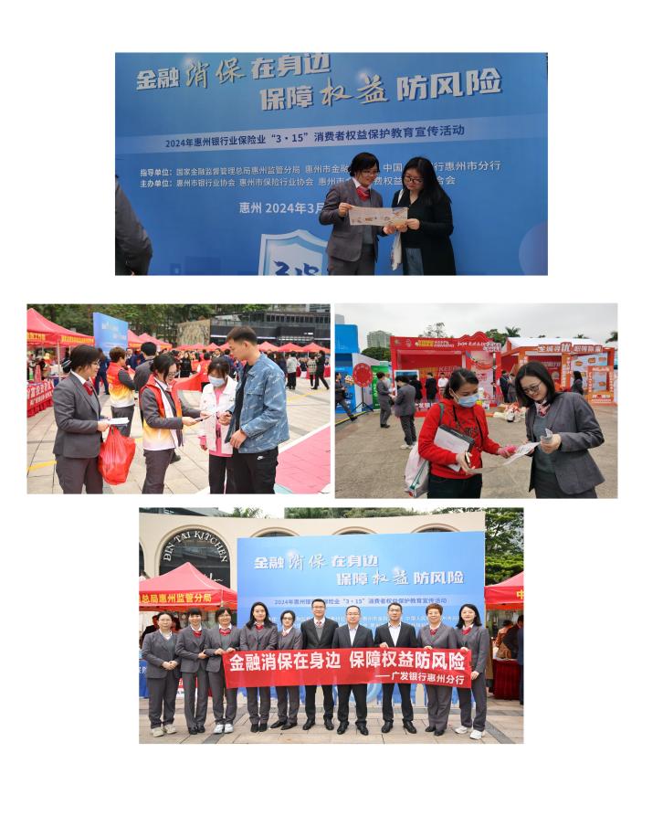 3月15日當(dāng)天,廣發(fā)銀行惠州分行副行長(zhǎng)譚加勁帶領(lǐng)相關(guān)部門員工前往惠州市華貿(mào)天地中央廣場(chǎng)參加惠州市2024年“3.15”國(guó)際消費(fèi)者權(quán)益日主題宣傳暨系列紀(jì)念活動(dòng)。本次活動(dòng)由惠州市銀行業(yè)協(xié)會(huì)、國(guó)家金融監(jiān)督管理總局惠州分局及惠州市消費(fèi)者權(quán)益保護(hù)協(xié)會(huì)等多家單位聯(lián)合舉辦。