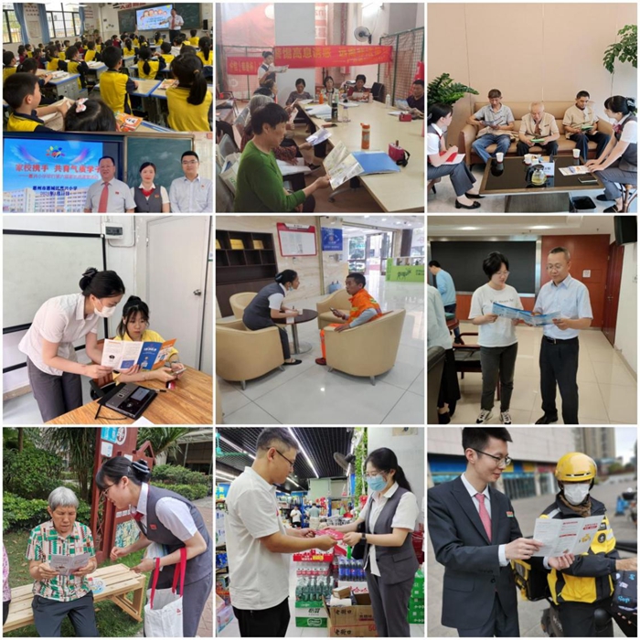 優(yōu)化支付進(jìn)商圈,轄內(nèi)大亞灣支行走入24小時(shí)便利店,遞上我行準(zhǔn)備的零錢包,普及金融知識(shí),講解人民幣知識(shí),普及反詐手段,為年邁的老人及部分客戶提供應(yīng)急通道;轄內(nèi)仲愷科技園支行抓住外賣小哥等待出餐的間隙向其傳播金融知識(shí)。