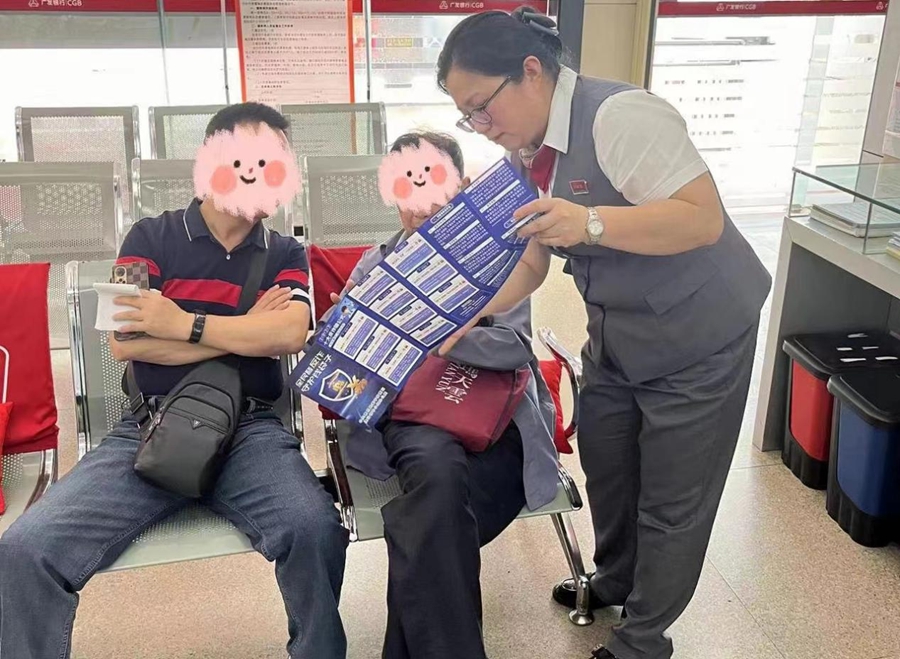 營(yíng)業(yè)室主任見羅大爺仍未有警惕心理,為避免資金遭受損失,故意以單據(jù)填寫不規(guī)范,要求其家人前來網(wǎng)點(diǎn)協(xié)助填寫。羅大爺因迫切匯款,立即致電其女婿前來網(wǎng)點(diǎn)協(xié)助。家人來到網(wǎng)點(diǎn)后,營(yíng)業(yè)室主任對(duì)羅大爺及其家人進(jìn)行反詐知識(shí)科普,通過多起案例現(xiàn)身說法,并在羅大爺家人的配合下,最終說服老人不再匯款。