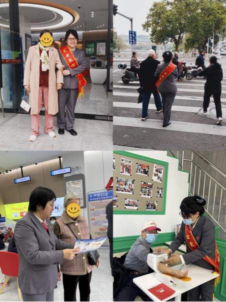 做優(yōu)適老服務,鋪就銀發(fā)無憂“暖心路”。“阿婆慢行,我扶您過斑馬線”,在熙熙攘攘的南壇路口,支行長者服務專員穿梭于網(wǎng)點周邊街道,主動攙扶護送行動不便的老年客戶過馬路,用“一扶一護”詮釋金融溫度。當看到張奶奶因路面濕滑險些摔倒時,大堂經(jīng)理立即上前攙扶,并開通“綠色通道”,全程陪同辦理存取款業(yè)務!澳銈冦y行的服務真是暖心!”張奶奶拉著工作人員的手連連道謝。此外,網(wǎng)點內(nèi)還設(shè)置血壓測量區(qū),以專業(yè)設(shè)備為有需求的客戶測量血壓。一位老年客戶表示:“銀行不僅幫我管錢,還關(guān)心我的健康,這樣的服務太實在了!”