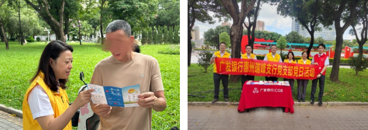 為深入貫徹落實(shí)中央金融工作會(huì)議精神,進(jìn)一步提升公眾金融素養(yǎng)和風(fēng)險(xiǎn)防范意識(shí),廣發(fā)銀行惠州瑞峰支行黨支部聯(lián)合群眾,于2025年6月11日在惠城區(qū)新時(shí)代廉潔文化公園開展了一場以“守護(hù)信用,金融為民”為主題的宣傳活動(dòng)。本次活動(dòng)結(jié)合“2025年普及金融知識(shí)萬里行”和“6.14征信記錄關(guān)愛日”兩項(xiàng)重點(diǎn)工作,內(nèi)容豐富、形式多樣,取得了良好的社會(huì)反響。