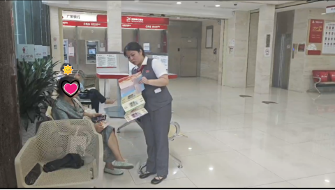 在日常金融服務的第一線,廣發(fā)銀行惠州分行營業(yè)部充分發(fā)揮營業(yè)網點的宣傳主陣地作用,在廳堂內設立了專門的宣傳臺,擺放反假貨幣宣傳折頁,并通過向客戶宣講等形式,營造了濃厚的宣傳氛圍。