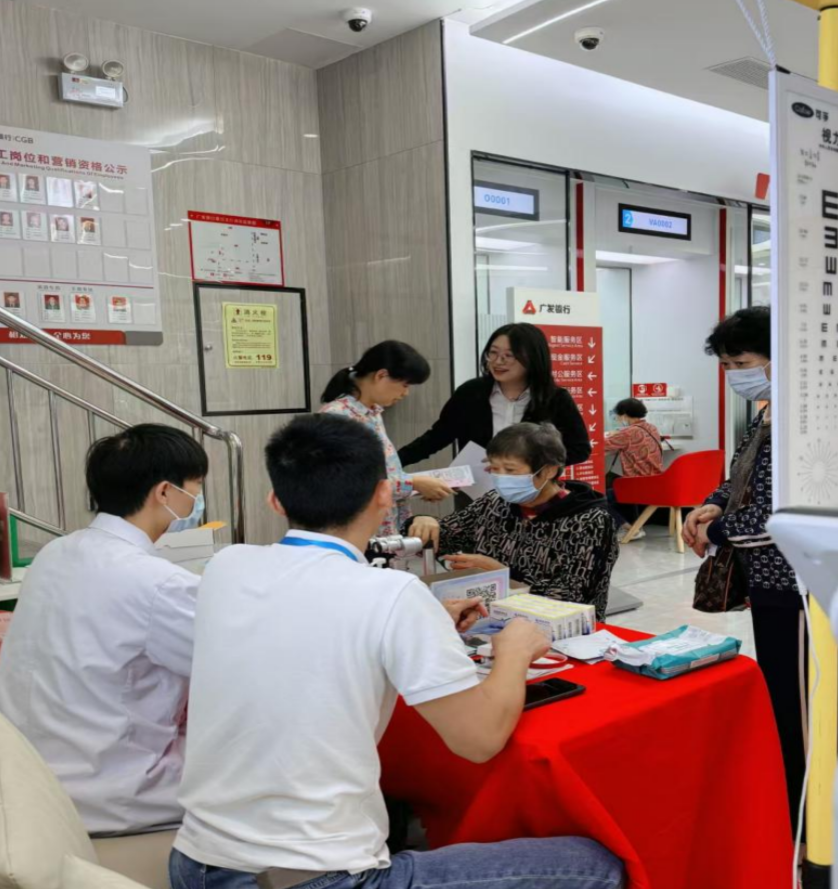 廣發(fā)銀行惠州南壇支行攜手專業(yè)醫(yī)療機(jī)構(gòu),在網(wǎng)點(diǎn)的長者服務(wù)專區(qū)舉辦“九九重陽 敬老愛眼”眼科義診活動(dòng);顒(dòng)現(xiàn)場,醫(yī)生團(tuán)隊(duì)為長者提供“篩查-咨詢-護(hù)理”全流程服務(wù):開展專業(yè)眼健康檢查,耐心解答各類眼科疑問;進(jìn)行面對(duì)面的眼健康知識(shí)科普,給予一對(duì)一的防治診療建議;提供免費(fèi)眼鏡清洗服務(wù);贈(zèng)送蒸汽眼罩、老花鏡及眼藥水等實(shí)用禮品。同時(shí),網(wǎng)點(diǎn)還配備了應(yīng)急醫(yī)療包,為健康保駕護(hù)航,讓“看得清楚、看得舒心”成為長者觸手可及的幸福。