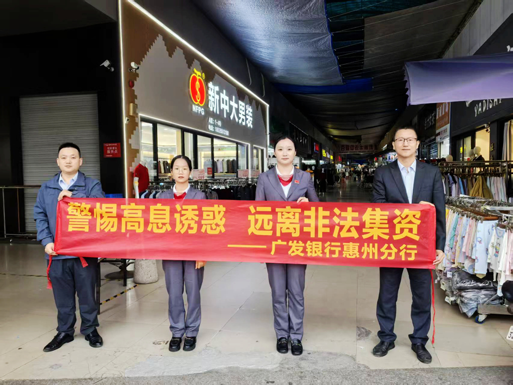 廣發(fā)銀行惠州惠東支行組織員工走進(jìn)商貿(mào)城普及金融知識(shí)。