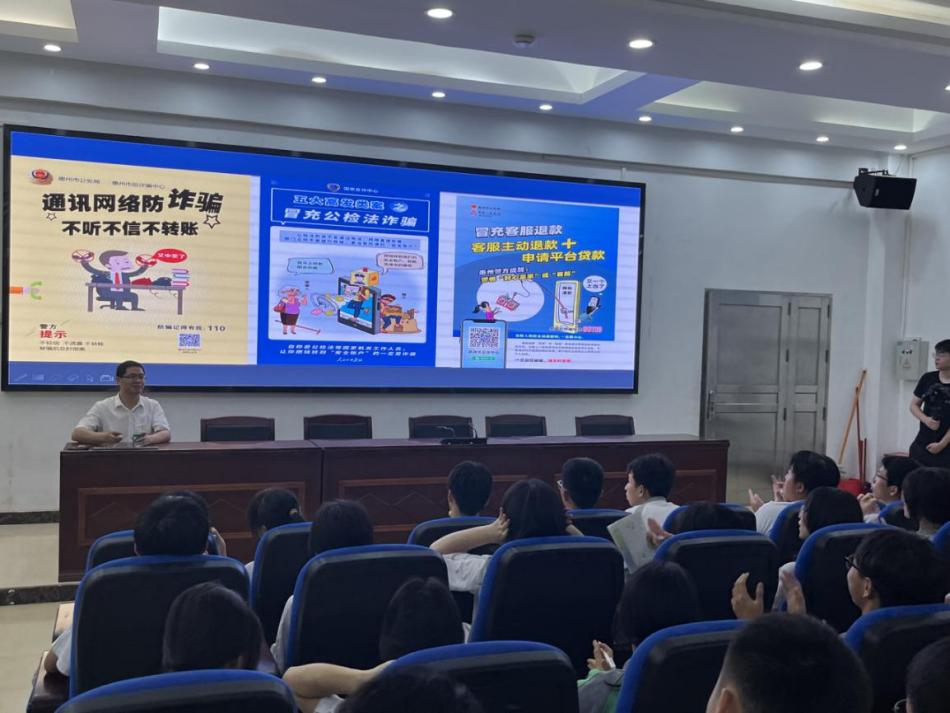活動上,劉惠智為師生們詳細講述了典型詐騙手段和類型,并針對不同的詐騙形式具體講解了防范措施和識別電信網(wǎng)絡詐騙的方法,以及反詐知識和有關法律,引導教育學生要自覺學法、知法、守法,共同對電信網(wǎng)絡詐騙要做到不理睬、不點擊、不輕信、不泄露、不轉賬,切實保護好自身利益。