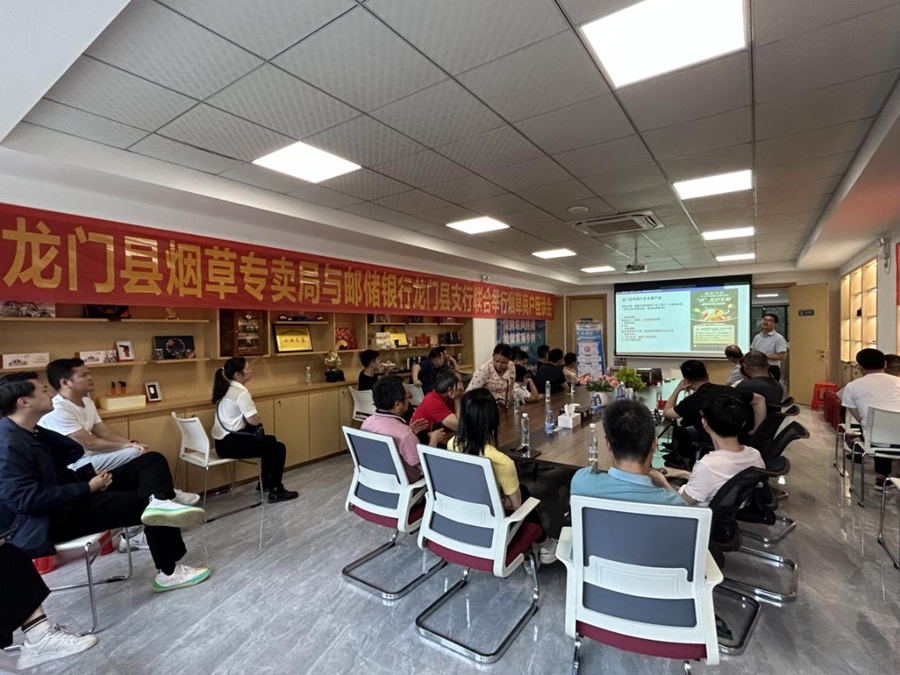 為強化黨建引領業(yè)務發(fā)展作用,深入推進黨建共建工作向縱深發(fā)展,2023年4月21日,郵儲銀行龍門縣支行聯(lián)合龍門縣煙草專賣局開展煙草貸業(yè)務推介會暨反詐宣講活動;顒釉邶堥T縣煙草專賣局“20支”直營店三樓會議室舉行,龍門縣煙草專賣局市場部負責人、“20支”直營店店長、郵儲銀行龍門縣支行副行長劉惠智以及縣城區(qū)域內(nèi)30多戶煙草零售商戶參加。