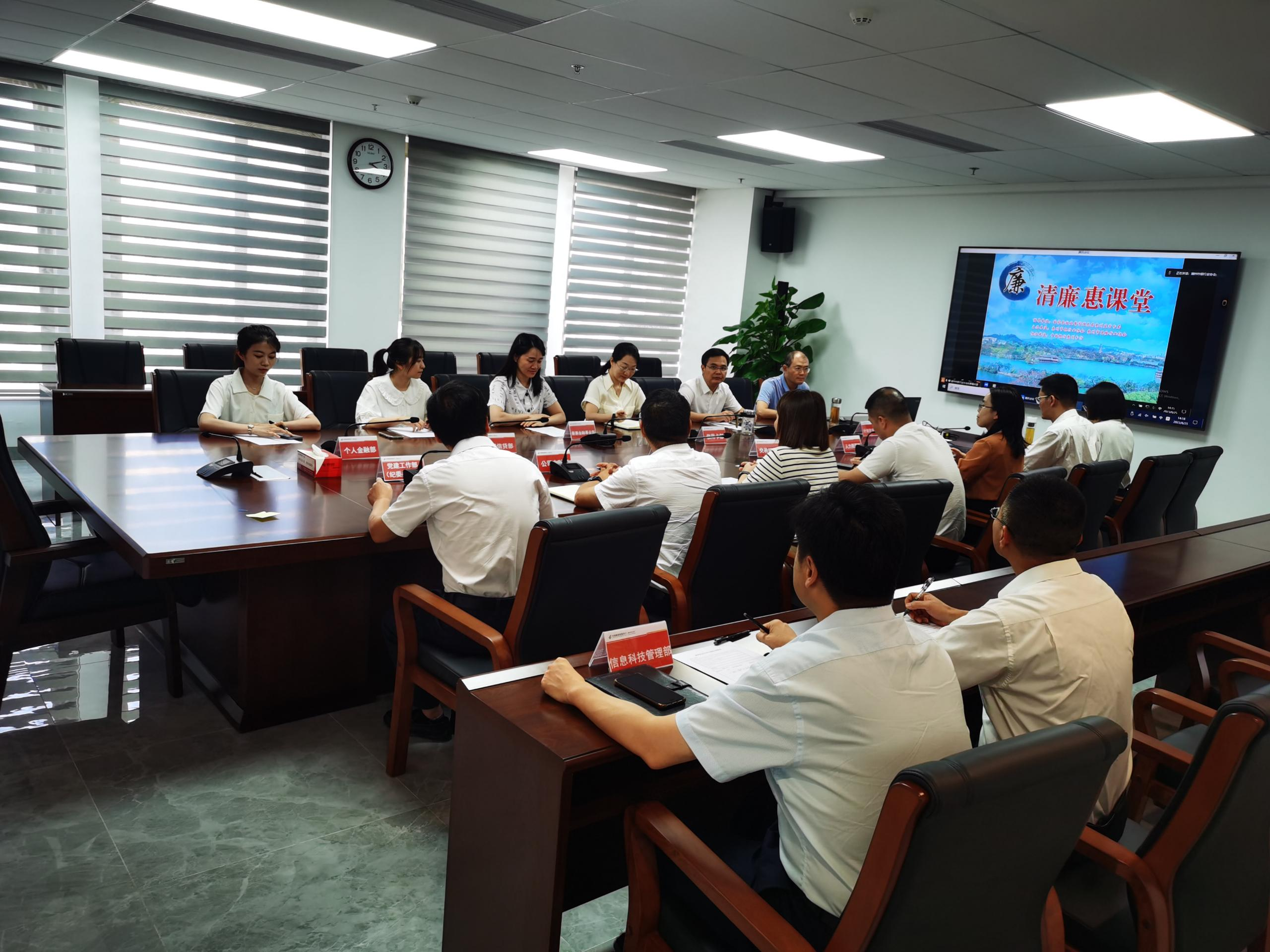 惠州市分行堅決扛起清廉金融文化建設的政治責任,將清廉金融文化建設納入黨風廉政建設和反腐敗工作部署進行謀劃,按照清廉金融文化建設三年行動方案要求,扎實推進我行清廉金融文化建設,獲評惠州銀行業(yè)2023年清廉金融文化建設優(yōu)秀單位。一是注重以學促廉,以上率下強力推動。市分行紀委書記、各黨支部書記為員工講授廉潔微黨課,教育引導黨員干部樹立從廉倡廉的價值取。全行黨員紀積極參加“黨規(guī)黨紀知識在線學習考試活動”、惠州銀行業(yè)保險業(yè)迎“七·一”慶建黨102周年學習“黨的二十大精神”(線上)知識競賽活動,以考促學,檢驗常態(tài)化廉潔教育的成效。二是注重傳承思廉,夯實廉潔文化根基。組織黨員干部前往紅色教育基地和廉潔教育基地參觀學習,為黨員干部寄送廉潔家書、廉潔倡議書,通過傳播清廉知識、弘揚清廉文化、啟迪清廉思想,讓黨員干部在思想上得到深刻教育,在心靈上筑牢拒腐防變的防線,進一步涵養(yǎng)廉潔思想、培養(yǎng)廉潔操守。三是注重警示育廉,筑牢防線敲響警鐘。以直觀、深刻的方式開展沉浸式廉政警示教育,組織黨員干部參加“清廉惠課堂”、觀看警示教育專題片《永遠吹沖鋒號》、《成長的誘惑》等,加強正面引領和反面警示的教育引導,讓黨員干部真正心有所畏、言有所戒、行有所止。