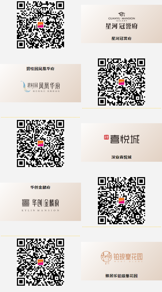 星河冠譽(yù)府、碧桂園鳳凰華府、深業(yè)喜悅城、華創(chuàng)金麟府、雅居樂(lè)鉑瑯峯花園