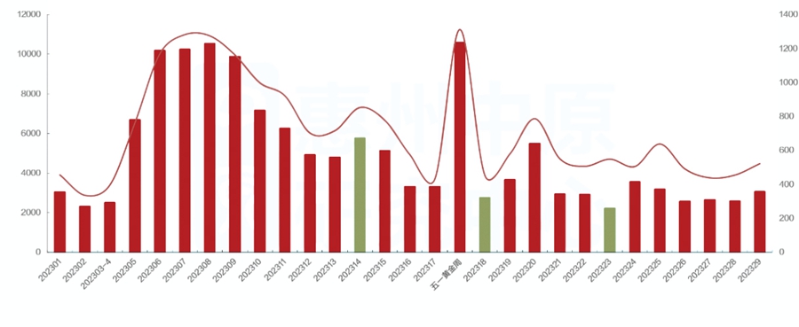 2023年上半年惠州市重點(diǎn)項(xiàng)目每周來訪認(rèn)購走勢(shì)圖。
