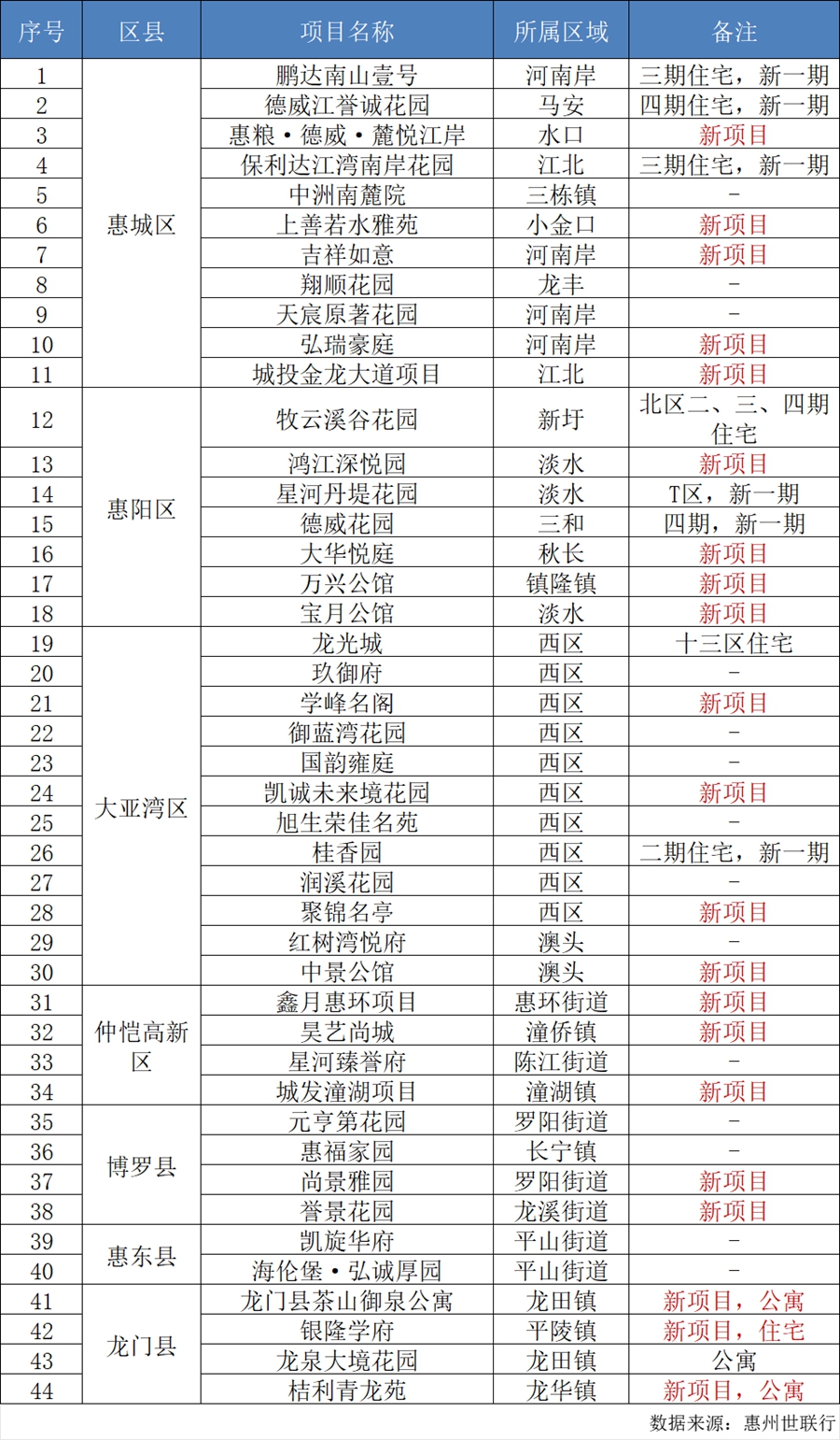 2024年惠州新房潛在供應(yīng)項(xiàng)目。數(shù)據(jù)來源:惠州世聯(lián)行
