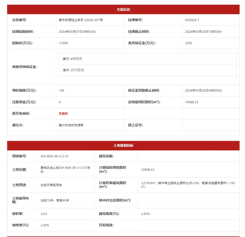 4月17日,惠州市公共資源交易中心發(fā)布惠城區(qū)金山湖JSH-B06-09-3-2-01國(guó)有建設(shè)用地使用權(quán)網(wǎng)上掛牌出讓公告。作為2024年惠州市本級(jí)首宗掛牌住宅地塊,也是中心城區(qū)較為難得的價(jià)值地塊,它的掛牌引發(fā)了多方關(guān)注。