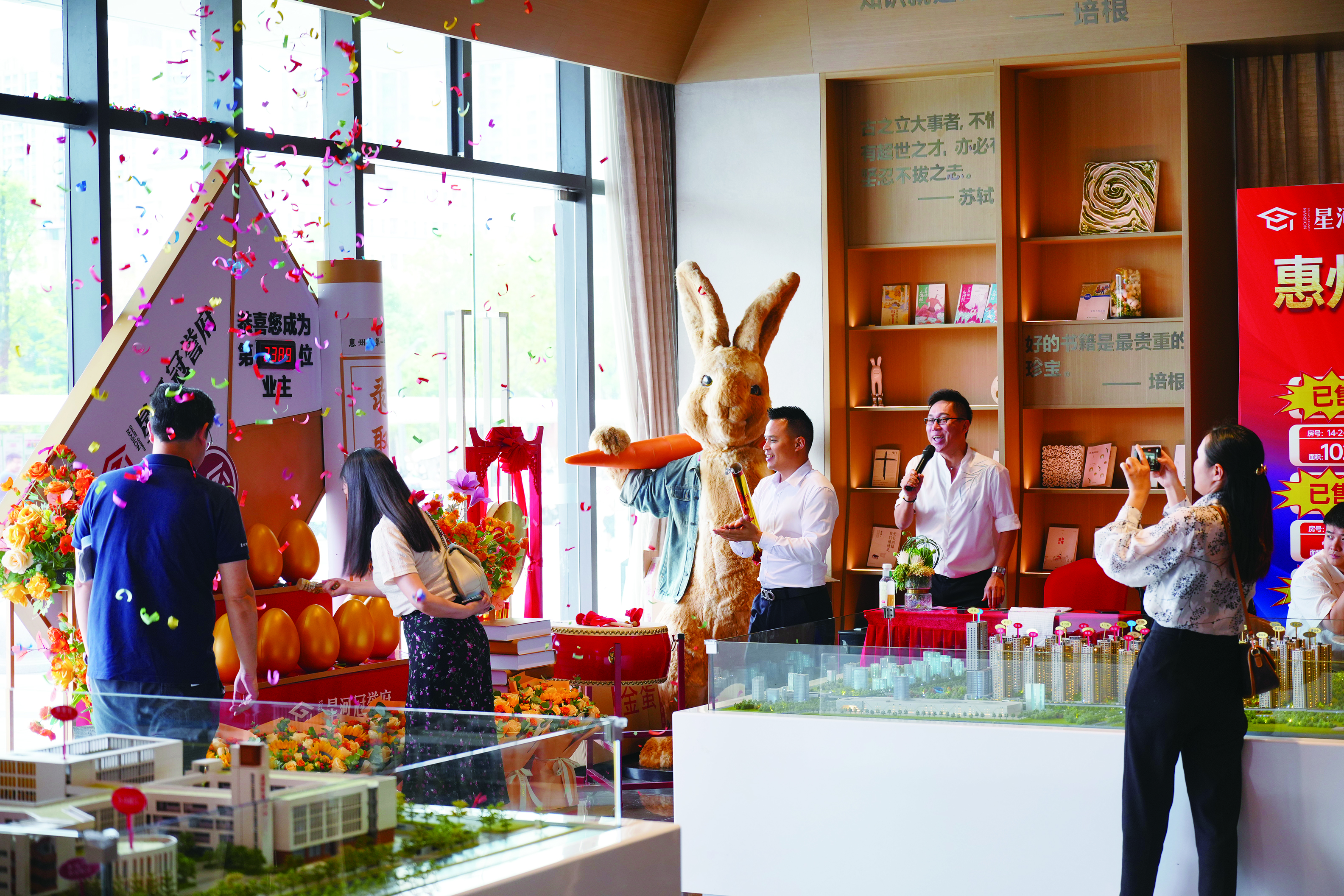購(gòu)房簽約環(huán)節(jié)后,客戶(hù)體驗(yàn)砸金蛋的喜慶時(shí)刻。