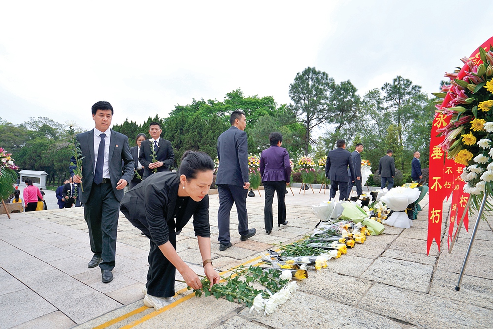 干部群眾向革命烈士敬獻(xiàn)鮮花;葜萑?qǐng)?bào)記者湯渝杭 攝