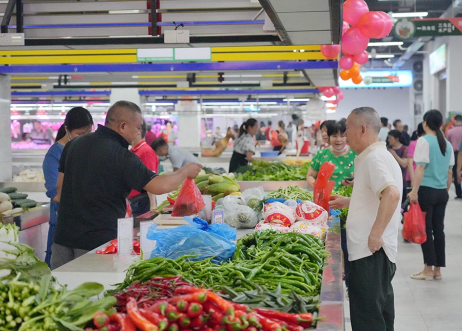 村民在干凈整潔的齊福源農(nóng)貿(mào)市場(chǎng)購(gòu)物。 惠州日?qǐng)?bào)記者許文昌 攝