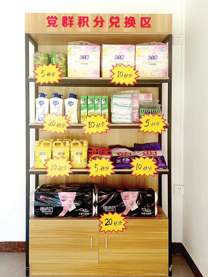 據(jù)了解,“黨群積分銀行”積分主要圍繞提升學(xué)歷技能、參與志愿服務(wù)、參與鄉(xiāng)村建設(shè)、領(lǐng)辦民生實(shí)事等村中心工作設(shè)置,獎勵分為物質(zhì)和服務(wù)兩種。黨員群眾以戶為單位參加,可通過提供服務(wù)、參與村(社區(qū))活動等形式攢積分。村(社區(qū))黨組織成立“積分銀行”評議小組,由評議小組負(fù)責(zé)登記和管理積分,村黨組織每季度組織一次亮積分,黨員群眾憑分值兌換糧油米面等生活用品或理發(fā)、拍攝證件照等上門服務(wù)。