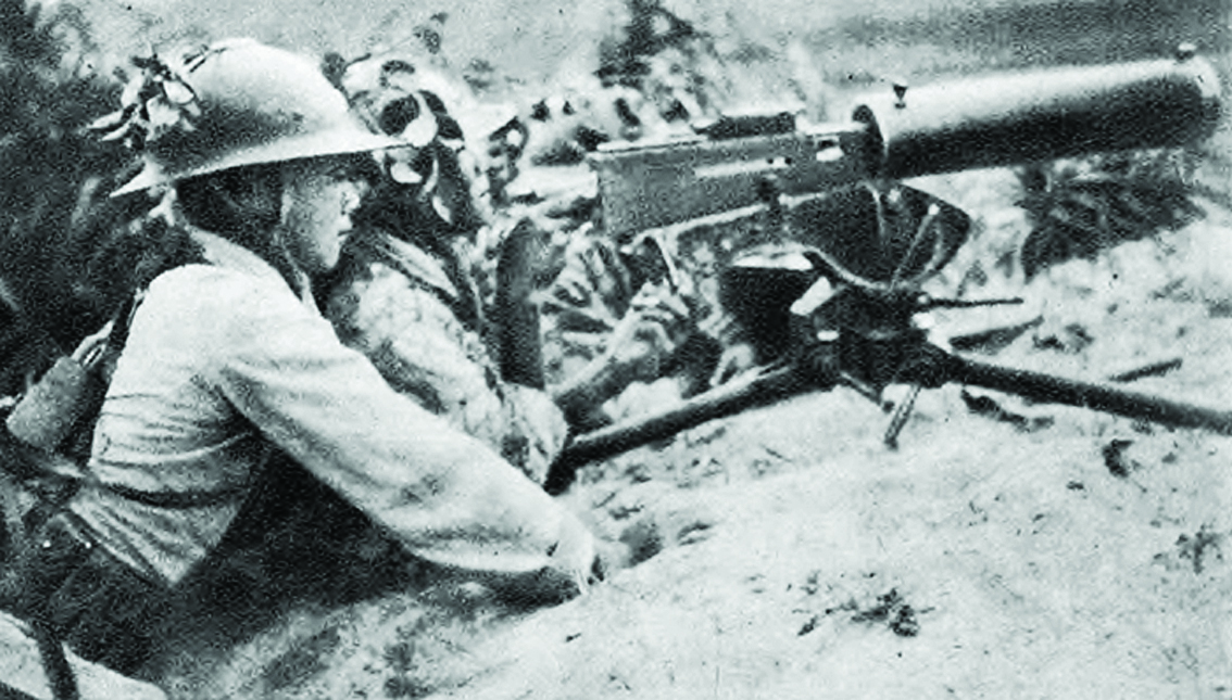 中國守軍在惠州城郊用重型機(jī)關(guān)槍阻擊日軍;葜萑請(bào)記者嚴(yán)藝超 翻拍