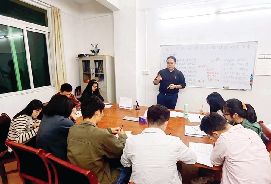 據(jù)介紹,“鐵涌夜!北小奥劦烙邢群螅g(shù)業(yè)有專攻”的宗旨,組織了面試培訓(xùn)經(jīng)驗(yàn)豐富的黨委班子成員、擅長文字材料工作的黨政辦主任、電商銷售額超千萬元的新進(jìn)公務(wù)員、曾是計(jì)算機(jī)等級(jí)考試培訓(xùn)師的編外人員等分別擔(dān)任相關(guān)課題組長,同時(shí)還引導(dǎo)正在努力考研、考公的年輕干部職工作為興趣小組的帶頭人。