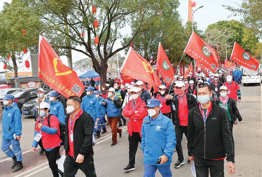 元旦當(dāng)日上午,天氣晴好,陽光明媚。位于惠陽區(qū)平潭鎮(zhèn)的新圩村文化廣場內(nèi)人聲鼎沸,彩旗飄飄,數(shù)百名徒步愛好者們整裝待發(fā),準(zhǔn)備以健康徒步的方式迎接新年的到來。