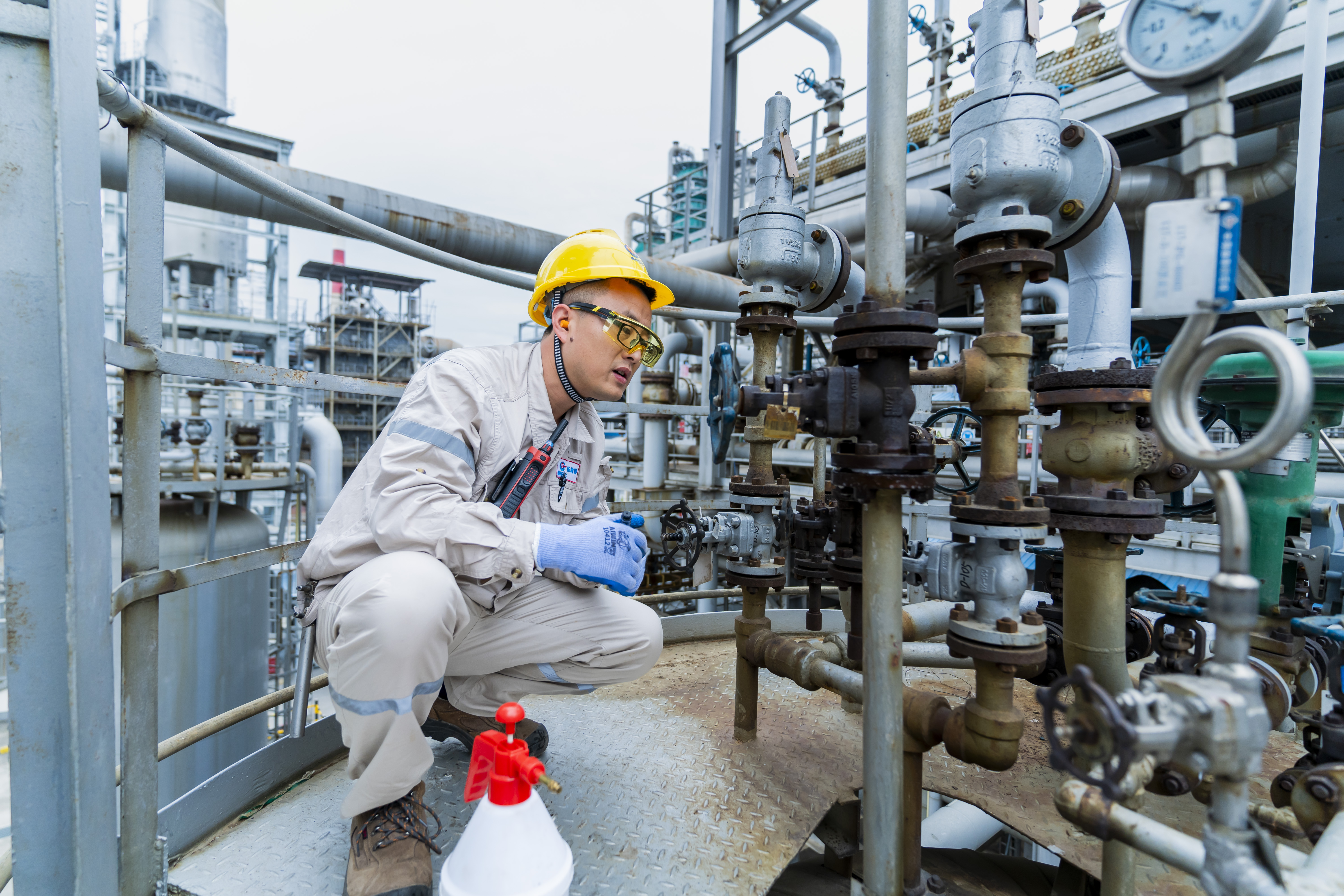 中海油惠州石化員工開(kāi)展管線氣密性檢查。 惠州日?qǐng)?bào)記者匡湘鄂 通訊員鄭奕璇 攝