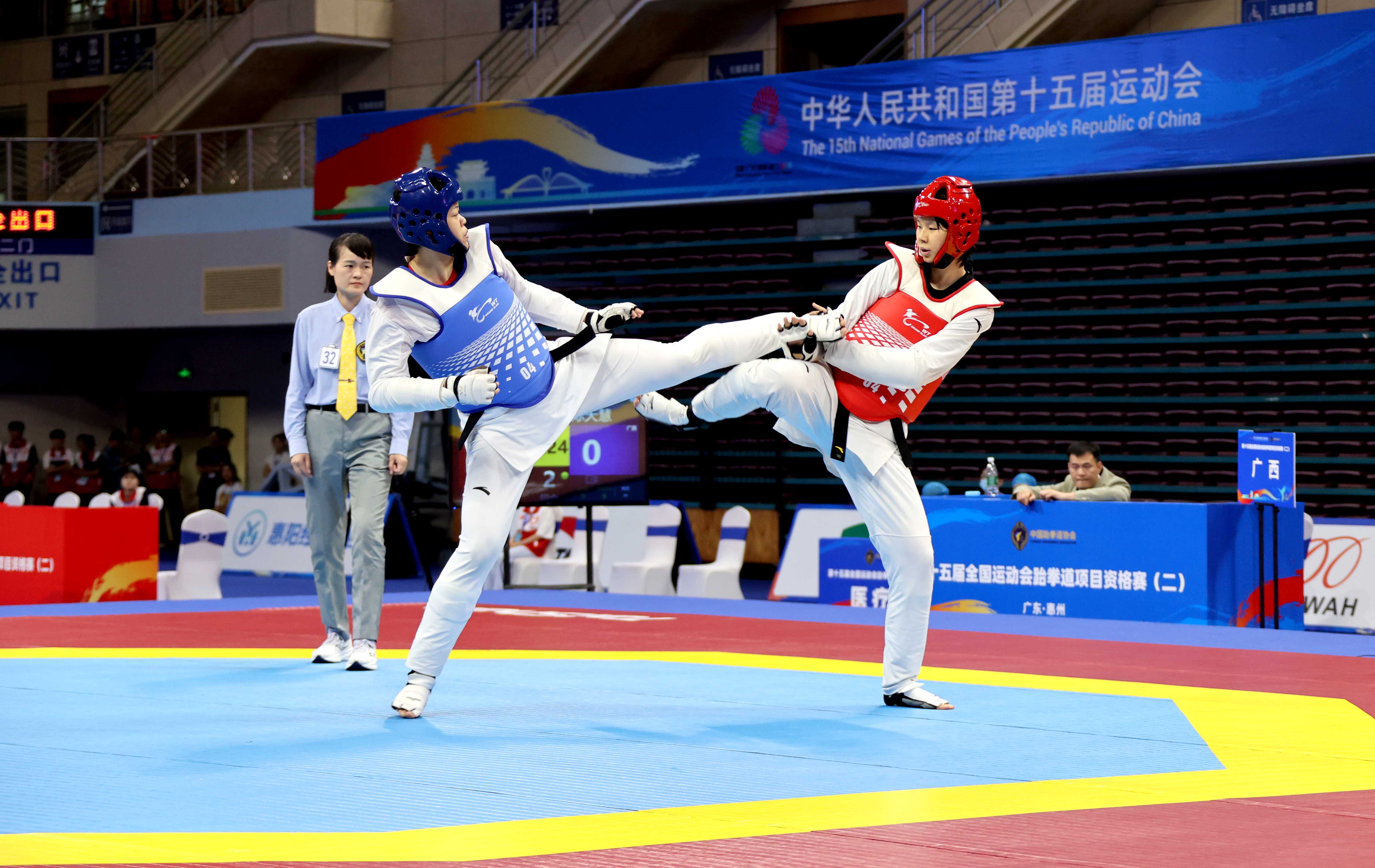 6月17日,第十五屆全國運動會跆拳道項目資格賽(第二站)在惠州體育館開賽。
