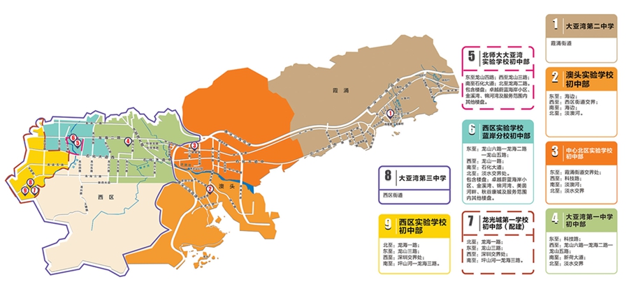 2023年大亞灣開發(fā)區(qū)公辦初中招生服務(wù)范圍示意圖。 大亞灣開發(fā)區(qū)管委會教育文化衛(wèi)生健康局 供圖