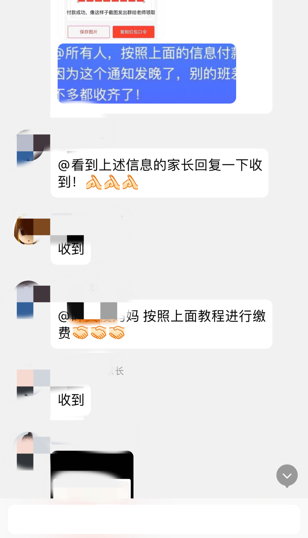 3.由于職業(yè)的特殊性,很多老師都會開消息免打擾功能,或者在上課期間關(guān)閉手機(jī)。騙子瞅準(zhǔn)時機(jī),利用時間差發(fā)布各類繳費(fèi)信息及不明鏈接,并且要求家長盡快完成轉(zhuǎn)賬。如果不仔細(xì)辨別,家長很容易上當(dāng)受騙。