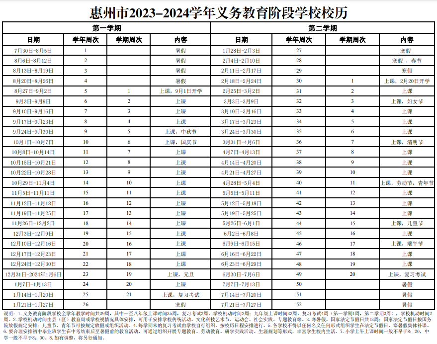 快來查查惠州中小學的校歷吧!