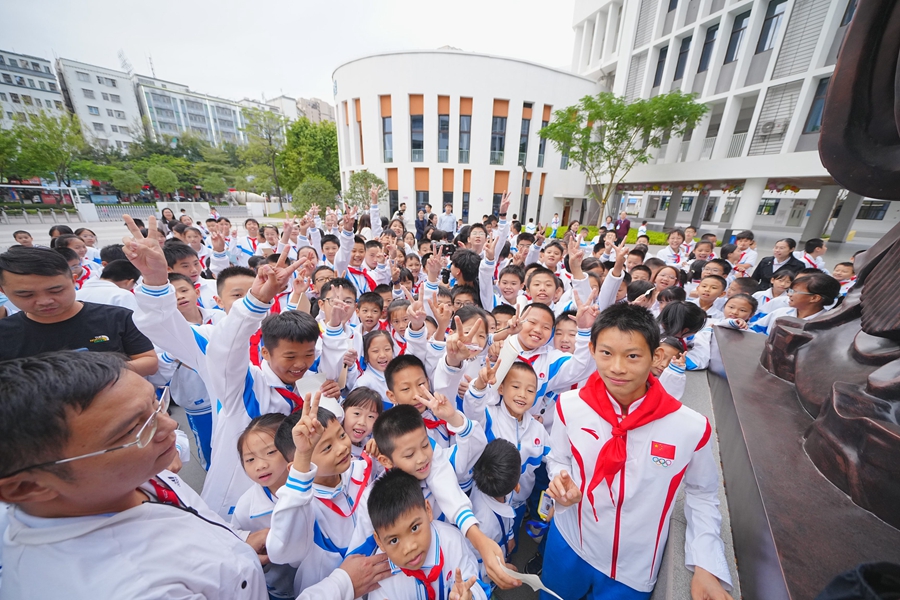 陳燁與師生們分享自己奪冠經(jīng)歷和練習心得歷程。他以“興趣是最好的老師”為主題,講述了自己從8歲初次接觸滑板,直到獲得亞運會冠軍這期間的心路歷程。他還結(jié)合自身經(jīng)歷,為同學們解答了如何突破瓶頸、解壓、兼顧滑板和學習等問題,強調(diào)不論正在經(jīng)歷著什么,一定要專注于自身,專注于自己做的事情,不要在意失敗,而要在失敗中吸取經(jīng)驗,未來才能獲得更多成功。學生代表為陳燁同學送上鮮花,佩戴紅領(lǐng)巾,對亞運冠軍的到來表示熱烈歡迎和由衷的感謝。