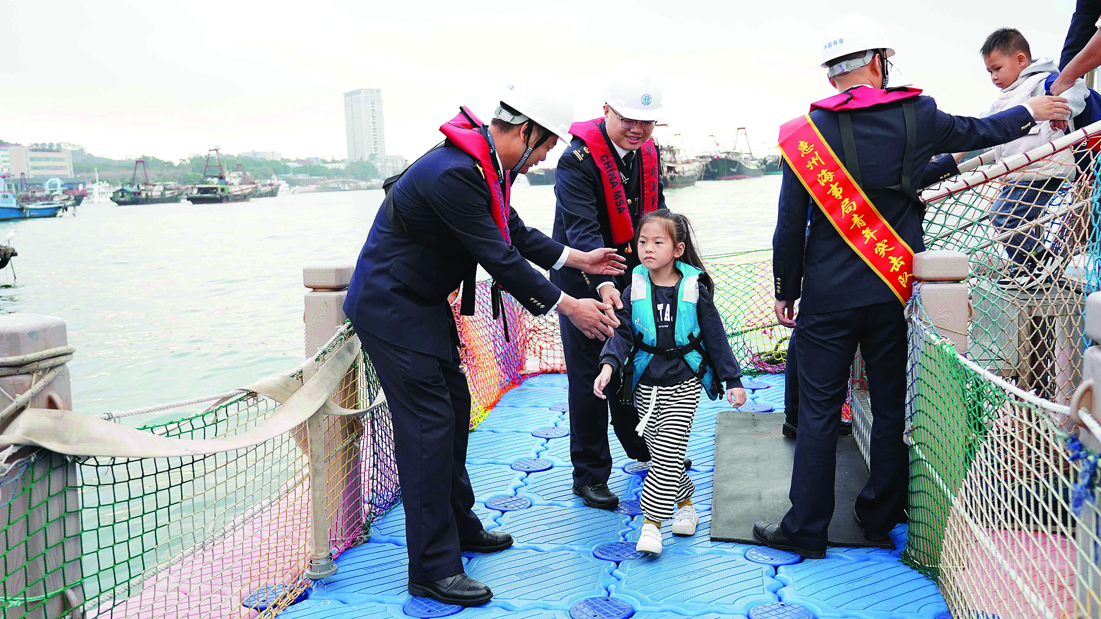 惠州海事局青年突擊隊(duì)在大亞灣東升渡口為孩子們平安返校保駕護(hù)航。 惠州日?qǐng)?bào)記者徐園連 馮麗均 通訊員劉曉瑩 攝