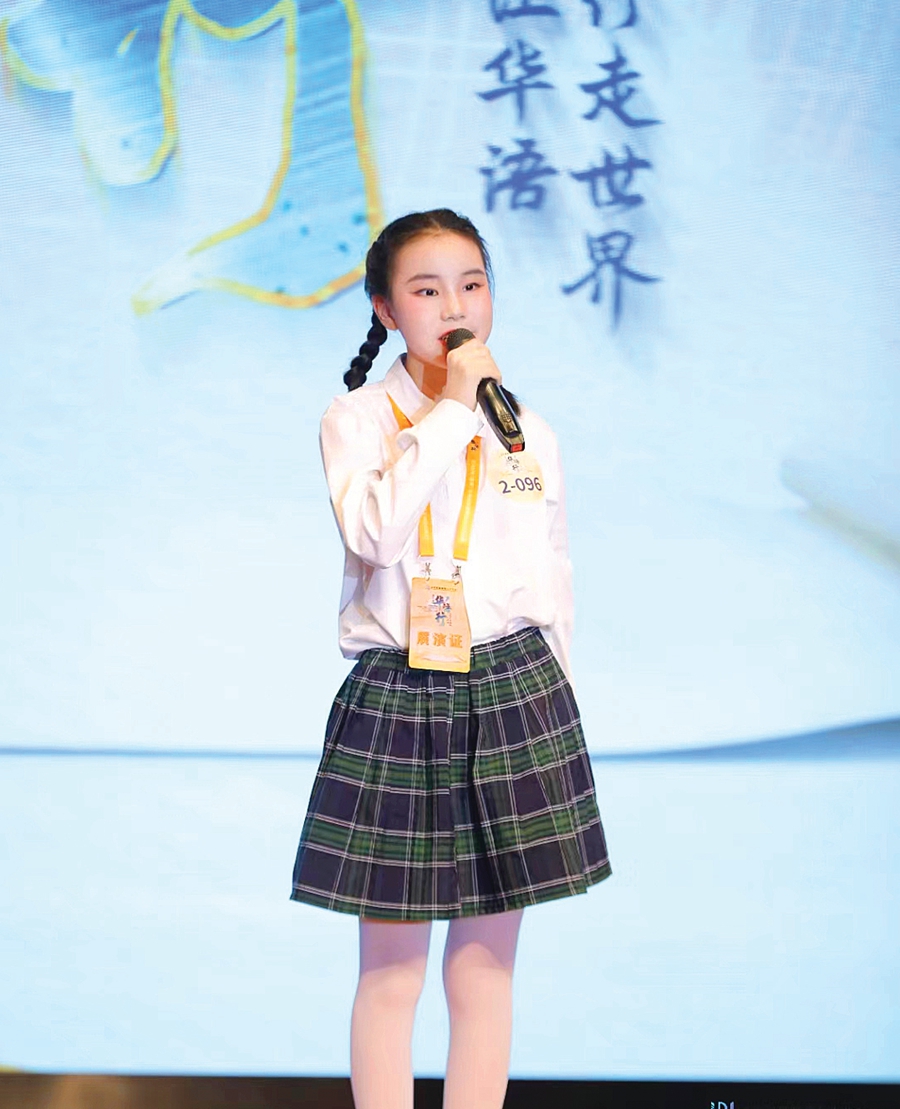 雷子軒在舞臺上展現(xiàn)朗誦魅力。