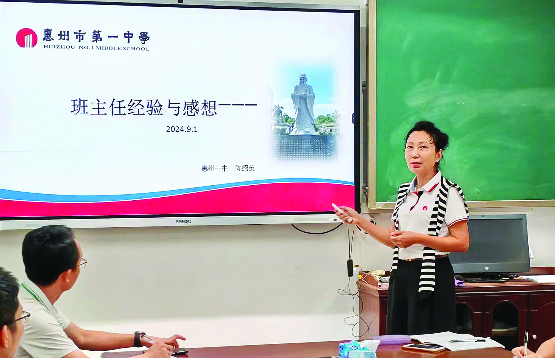 惠州一中深刻把握核心要義,認(rèn)真貫徹到教師隊伍建設(shè)中去,振之以“木鐸金聲”,著力幫助教師涵養(yǎng)大智慧、拓展大格局、成為大先生。一大批師德高尚、業(yè)務(wù)精湛、充滿活力的教師躬耕教壇,堅守初心,在惠州一中的三尺講臺上潛心教書育人,打造出屬于自己的“名片”。他們用自己的行動詮釋教育情懷,彰顯新時代人民教師的責(zé)任與擔(dān)當(dāng),也贏得社會各界的廣泛贊譽與高度評價。2024年,惠州一中教師陳紹英、王光榮、肖紅芳被認(rèn)定為惠州市“終身班主任”。
