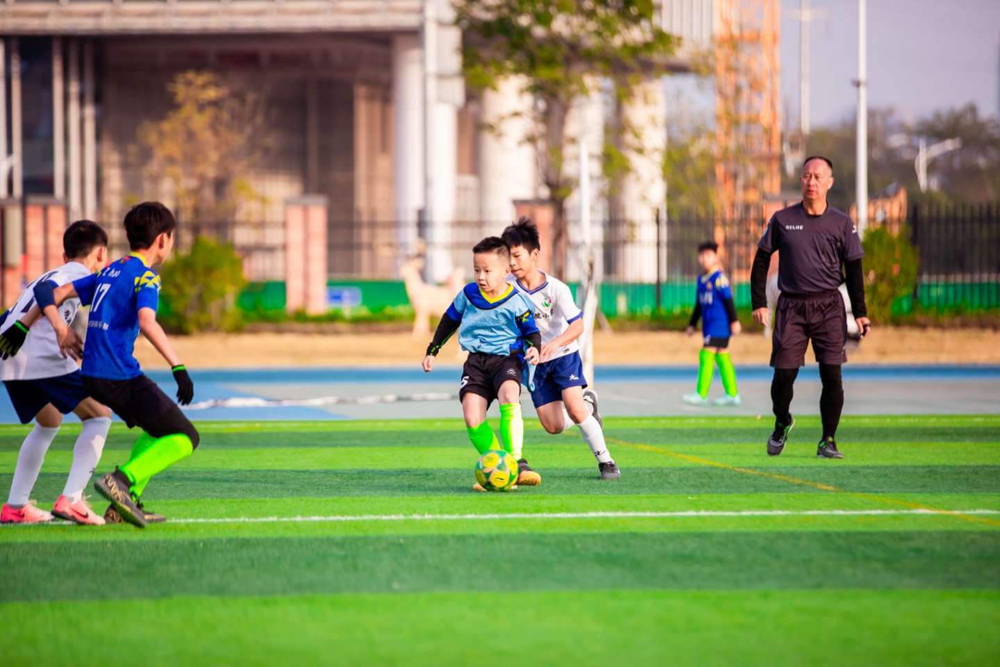 孩子們奔跑在校園足球聯(lián)賽綠茵場(chǎng)上。 惠州日?qǐng)?bào)記者藍(lán)斐菲 攝
