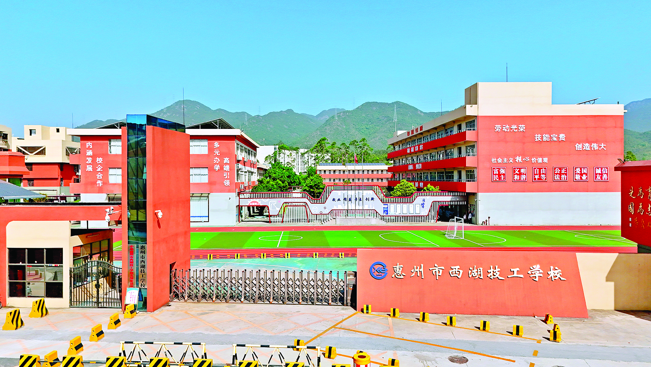 惠州市西湖技工學(xué)校佇立在雄壯的象頭山下。