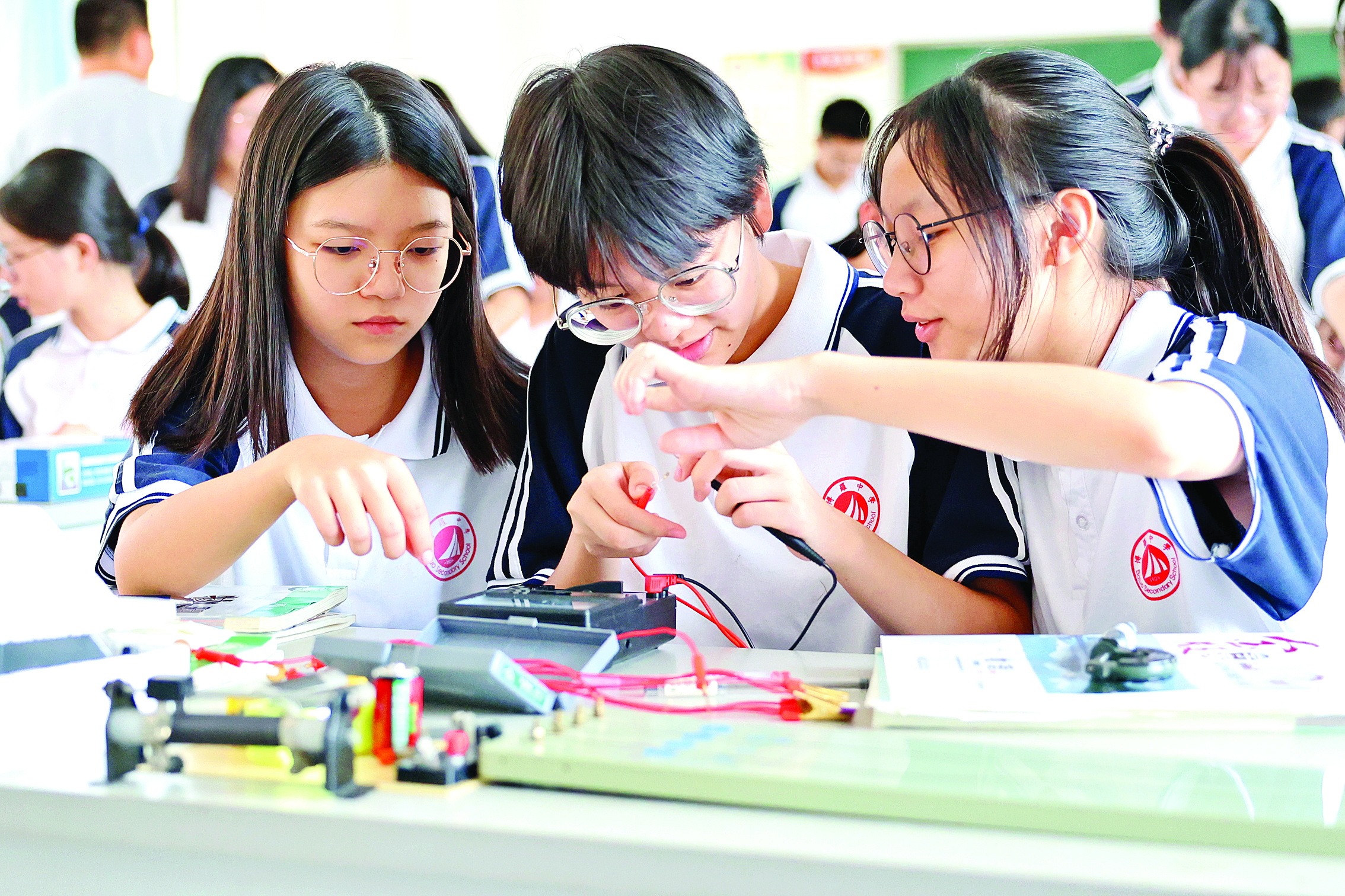 課堂上,非遺藍(lán)染的靛藍(lán)暈染出少年意氣;實(shí)驗(yàn)室里,科創(chuàng)思維的火花點(diǎn)亮探索之路;舞臺(tái)上,藝體少年的身姿舒展青春芳華……“十四五”期間,博羅中學(xué)以新課程改革為契機(jī),打破傳統(tǒng)課程體系束縛,構(gòu)建了獨(dú)具特色的“三維課程”體系,涵蓋面向全體的國(guó)家課程、培養(yǎng)興趣的拓展課程和發(fā)展天賦的特需課程,為學(xué)生提供了多樣化、個(gè)性化的成長(zhǎng)路徑。
