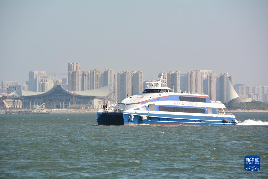 1月7日,由金門(mén)出發(fā)的“金瑞龍”客輪駛?cè)霃B門(mén)五通客運(yùn)碼頭水域。新華社記者 顏之宏 攝