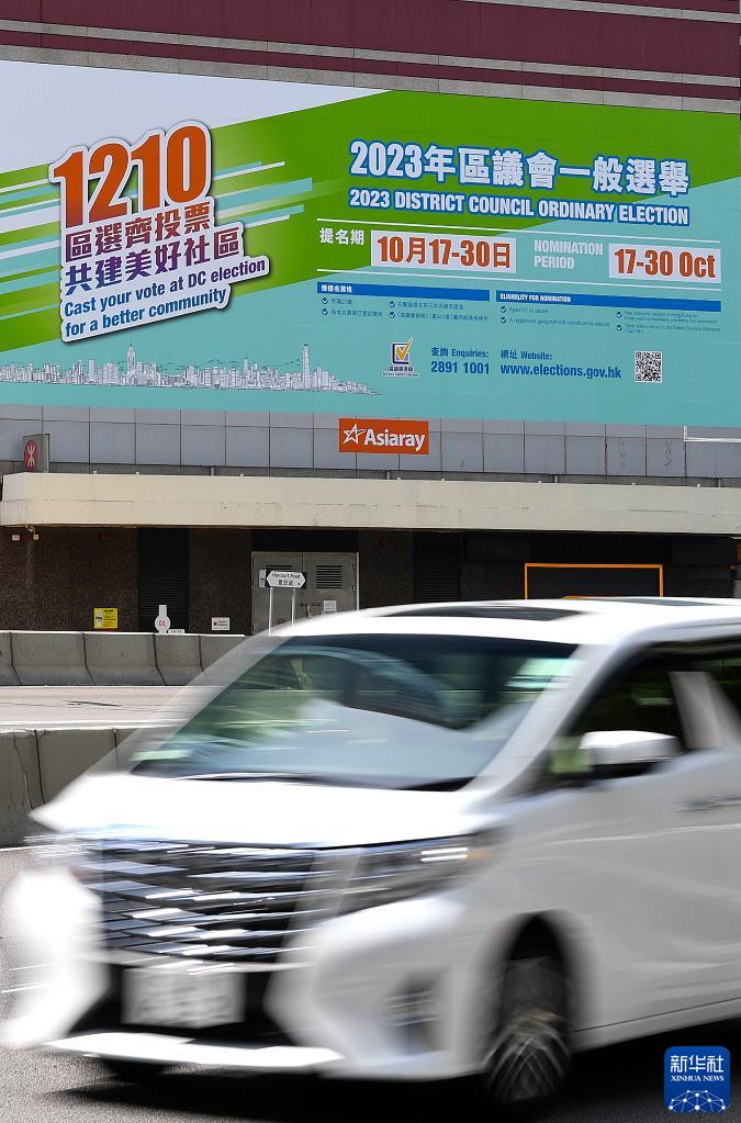 這是10月17日在香港灣仔拍攝的香港2023年區(qū)議會(huì)一般選舉宣傳海報(bào)。新華社記者 陳鐸 攝