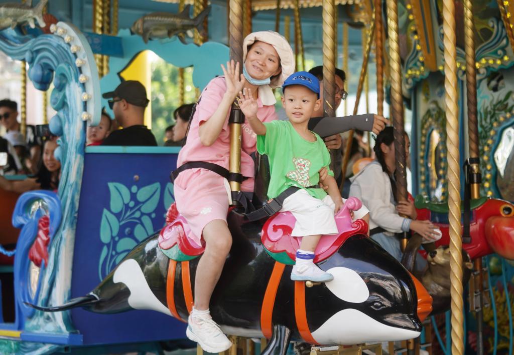 游客在香港海洋公園游玩(10月3日攝)。新華社發(fā)(王申攝)