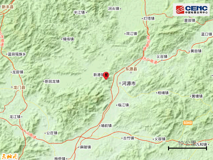震中距源城區(qū)7公里、距東源縣11公里、距龍門縣39公里、距新豐縣55公里、距紫金縣57公里,距河源市6公里,距廣州市157公里。