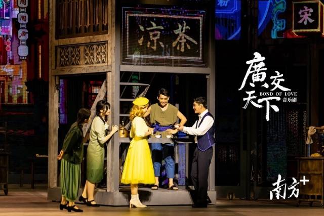 白鵝潭,月色迷蒙,粵曲悠揚(yáng),喬誠(chéng)為伊莎貝拉講起粵劇折子戲《花田錯(cuò)會(huì)》的故事。音樂(lè)劇《廣交天下》以清新時(shí)尚方式將粵劇粵曲、廣東音樂(lè)等元素融入其中。